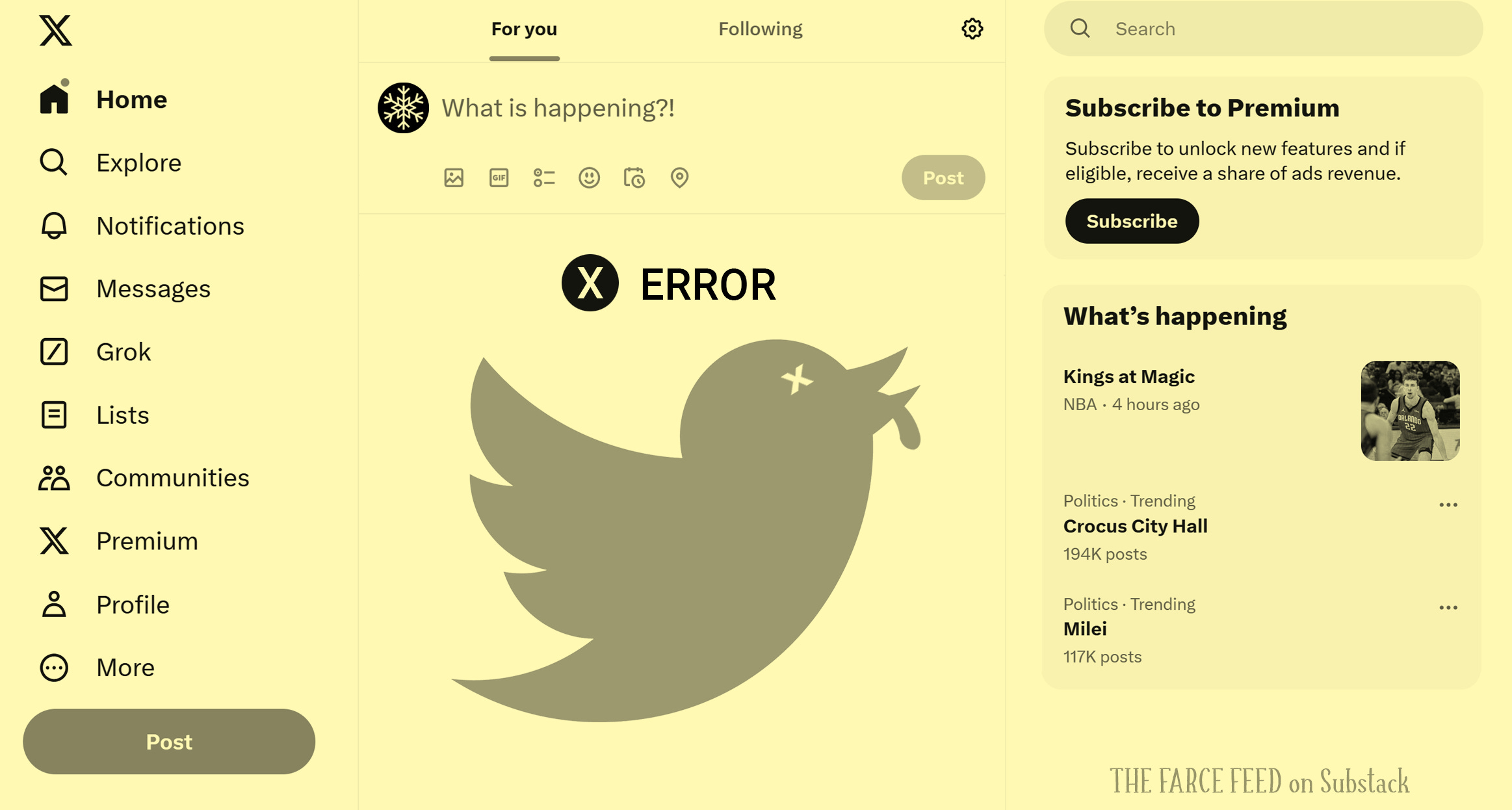 Months turned into a year, and before he knew it, Smith got carried away and inadvertently blocked all 335.7 million Twitter/X users, even all the spambot cam girls, effectively rendering his timeline a barren wasteland of silence, with only a few ads for razor blades and organic soap on display. Yes, even other leftists were blocked as he obsessively combed through their entire history searching for any minor point of contention, be it anime related or simply a preference for coffee over tea.